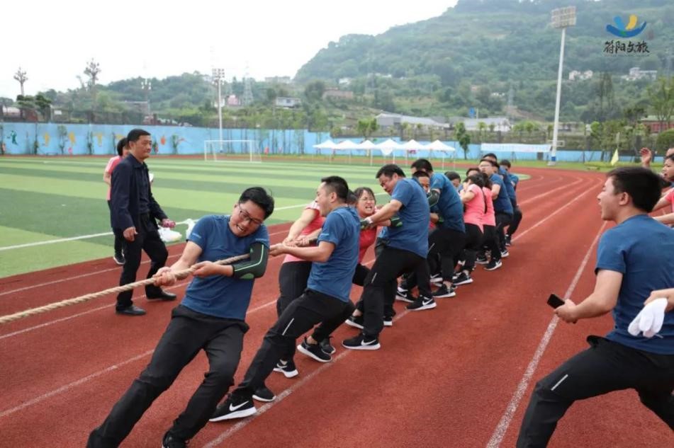 隨著哨聲一響,我們雙手握緊長(zhǎng)繩,咬緊牙關(guān)向后拉,為了把握節(jié)奏形成合力,心里默念著“一二、一二”,場(chǎng)上一時(shí)僵持難下,但難敵強(qiáng)悍對(duì)手,第一局廣源達(dá)勝。這仿佛符合多數(shù)人的預(yù)期,但我們?cè)鯐?huì)被拘于這固定印象,越戰(zhàn)越勇才是符陽(yáng)文旅人的風(fēng)姿。第二場(chǎng)對(duì)決比第一場(chǎng)更加艱難,一開(kāi)場(chǎng)廣源達(dá)占據(jù)絕對(duì)優(yōu)勢(shì),我們險(xiǎn)被拉到了終線,全憑一口氣死撐,牙關(guān)咬緊,身體后傾,不斷降低重心,腳步穩(wěn)扎,做著別人眼里無(wú)畏的掙扎。一定不能越線!在超高壓下堅(jiān)持了十余秒,那一刻拼的就是韌勁!一群瘦弱的文旅人憑著一股拼勁慢慢把賽場(chǎng)主動(dòng)權(quán)掌握在了自己手中,每向后移動(dòng)一步,心里的勁更足了,如荒漠迷路的旅者遇見(jiàn)了綠洲,我們也尋得了力量之源。當(dāng)現(xiàn)場(chǎng)歡呼聲響起時(shí),我們已癱坐一片,不敢置信,我們贏啦!