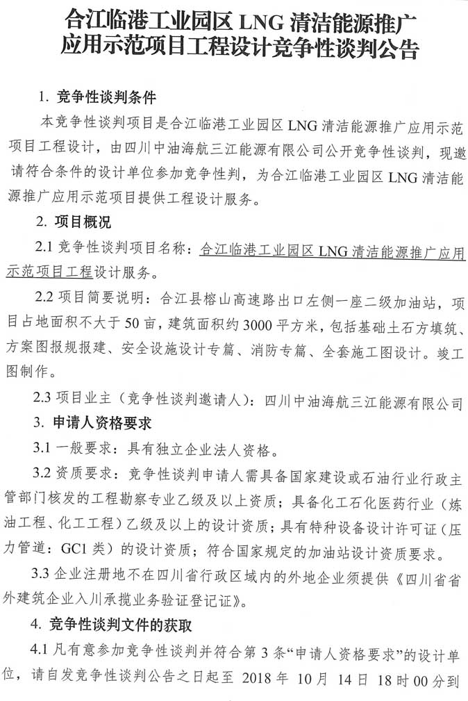 合江臨港工業(yè)園區(qū)LNG清潔能源推廣應(yīng)用示范項(xiàng)目工程設(shè)計(jì)競(jìng)爭(zhēng)性談判公告.docx