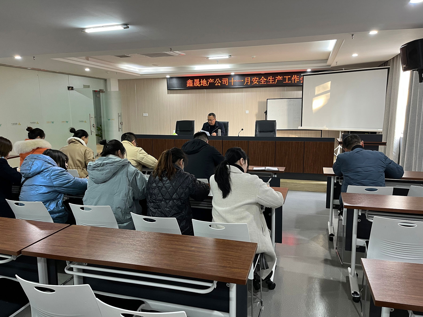 2021 年 11 月 30 日, 瀘州鑫晟房地產開發(fā)有限公司組織召開 十一月安全生產工作會,會議由董事長任東財主持,公司全體員 工參加。