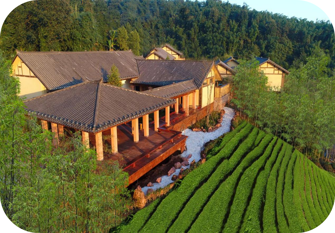 半山云舍建筑面積1246平方米,由六幢具有濃郁川南特色民居風(fēng)格的吊腳小樓與竹林、茶園、水池、庭院等外部景觀組成。設(shè)有辦公區(qū)、景區(qū)規(guī)劃展示大廳、接待服務(wù)區(qū)、住宿與停車等區(qū)塊;配置有景區(qū)管理、景區(qū)招商、地產(chǎn)銷售、來賓接待等綜合性管理功能,其中設(shè)有1個能容納50人以上的多功能會議室,設(shè)有1個能至少容納10人以上的小會議室,配有3個以上男女廁位的公共衛(wèi)生間;建筑設(shè)計上以當(dāng)?shù)氐牡は技t石、穿斗木構(gòu)等傳統(tǒng)文化因素為精神內(nèi)核,在空間布局上融入落地門窗、觀景平臺等現(xiàn)代審美元素,匠心打造,風(fēng)格鮮明。