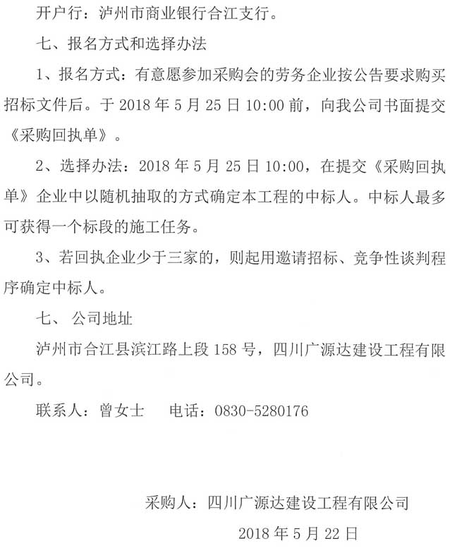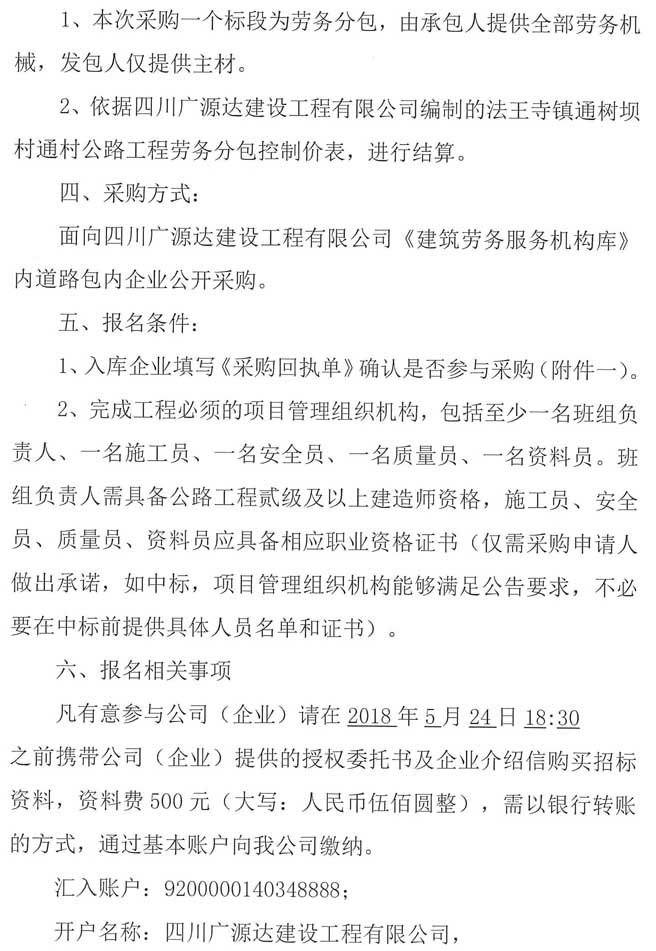 四川廣源達建設(shè)工程有限公司法王寺鎮(zhèn)通樹壩村通村公路工程勞務(wù)分包企業(yè)采購公告.doc
