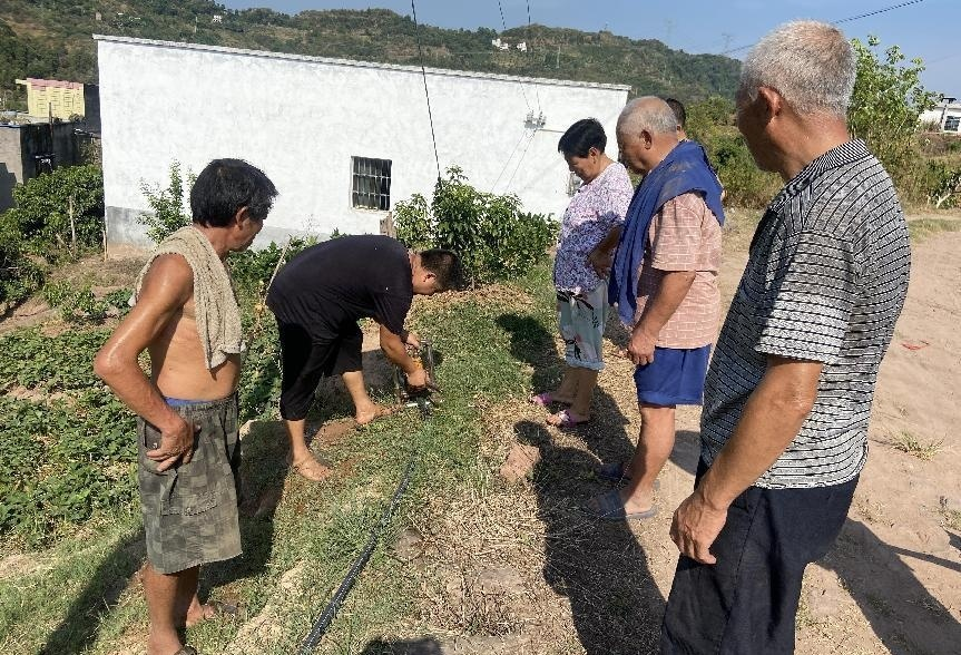 供水中心負(fù)責(zé)人劉世江、 一線員工共同檢查真龍鎮(zhèn)武民村供 水管線是否存在漏水情況,確保武民村供水正常
