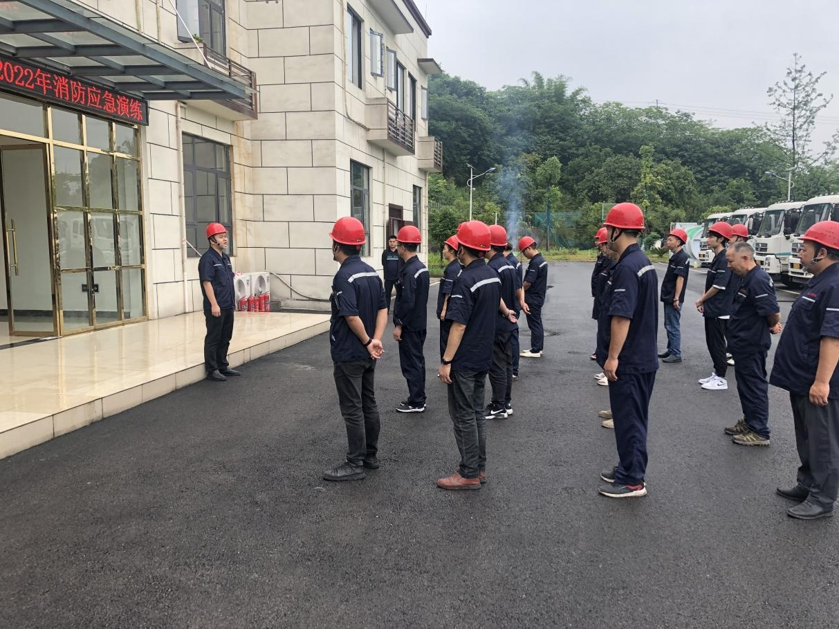 2022 年 5 月 27 日, 城投子公司匯鑫環(huán)保公司下屬的合江縣生 活垃圾壓縮中轉站舉行了 “ 預防為主, 安全第 一 ” 為主題的消防安全 應急演練。